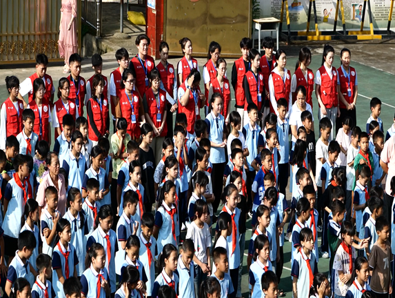 7月8日,情牵乡土·益路同行实践团成员在民安村民安小学开始了第一天的实践活动。清晨的第一缕阳光洒在乡村的土地上,实践团成员与小学生们齐聚在操场,举行了庄严的升国旗仪式。伴随着激昂的国歌,五星红旗缓缓升起,全体成员庄严肃立,坚定的目光中充满了对祖国的热爱和对未来的期盼。