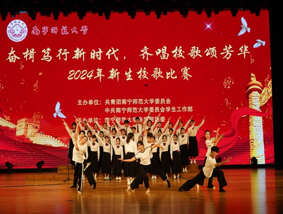 为展现新生的青春风采,弘扬爱校荣校精神,11月9日,我校在武鸣校区举办“奋楫笃行新时代,齐唱校歌颂芳华”新生校歌比赛。校团委、党委学生工作部负责人,团学教师代表、各学院学生代表1200余人观看了本次比赛。
