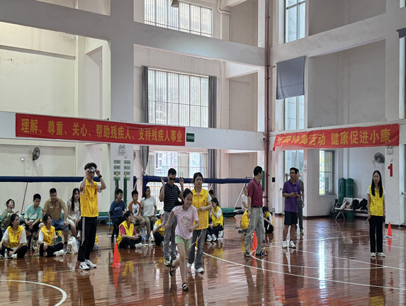 为传承公益初心,凝聚社会力量,关怀特殊群体,6月7日上午,我校爱心社联合南宁市残疾人联合会在南宁市残疾人活动中心开展“爱心帮帮盲”助残义务家教“盲途有伴,星火成炬”亲子互动活动。中国盲人协会主席李庆忠、副主席刘芳、广西盲协主席陶进等嘉宾,我校爱心社志愿者代表以及盲人家庭及其子女共计100余人参加了活动。