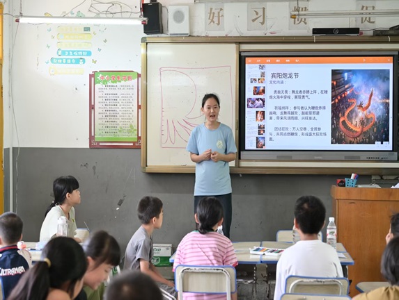 作为宾阳文化瑰宝,炮龙节引发了孩子们的热烈共鸣。课堂上,师生互动问答,展现着本土文化的深厚底蕴与鲜活传承;多媒体视频中的鞭炮声响起,百年炮龙迎难而上、坚韧勇敢的精神内核得以重温。孩子们眼中闪烁的光芒,正是无数宾阳人守护与奉献精神得以延续的希望星火。