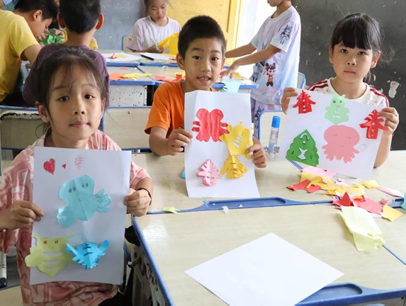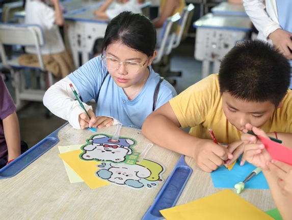 中国红的剪纸点亮了活动现场。在队员们指导下,孩子们灵巧转动剪刀,精美的纹样跃然纸上。从启蒙兴趣到动手实践,最终完成作品,文化自信正是在一次次巧手实践中悄然生根。