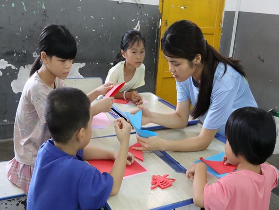 了解世界方能更好传承自身。队员们特别设计了泰国水灯制作体验课,她们顶着夏日酷暑,就地取材采摘本地芭蕉叶,带领学生亲手制作出一盏盏青绿挺拔的水灯。汗水与欢笑中,孩子们感受到异国文化的魅力,也体会到文化交融的共通之美。