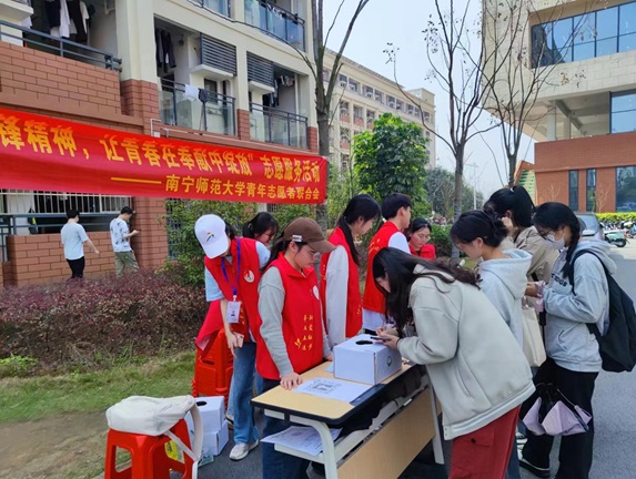 3月5日当天,我校组织开展“志愿服务进社区”活动,在武鸣区红岭社区,校团委联合武鸣区直属机关工委开展了“绿城闪耀志愿红,文明实践学雷锋”活动,遴选了20名大学生志愿者参与其中,协助开展垃圾分类宣传、环境卫生整治等志愿服务;在兴宁区人民中社区,组织了18名大学生志愿者开展了“美丽广西·青春行动”活动,通过清扫朝阳河步行街道、捡拾垃圾、擦拭公共设施等志愿服务,用实际行动为城市增色、为文明添彩。此外,在五合、武鸣校区组织开展了学雷锋打卡活动,如归置教室桌椅板凳、整理共享单车、清理校园垃圾、我为同学办实事等,活动吸引了500余名同学参与,以实际行动让雷锋精神在新时代绽放更加璀璨的光芒。