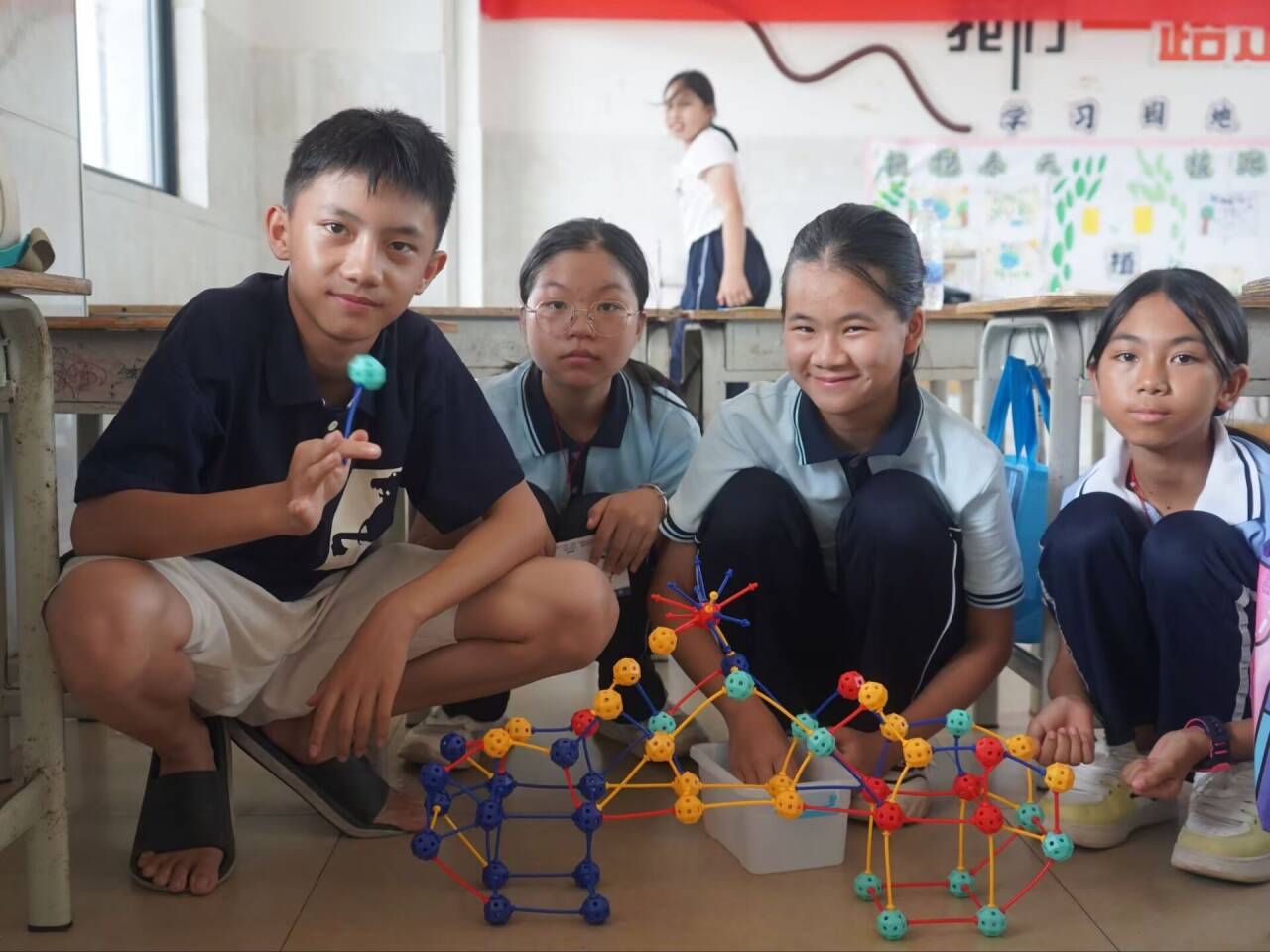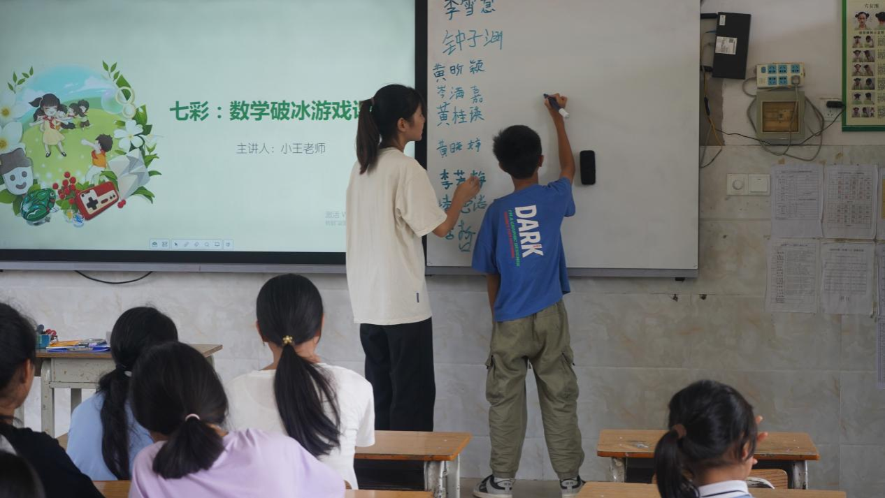 为让乡村孩子感受数学乐趣、培养思维能力,七彩课堂将数学思维融入趣味游戏。“逢7过”里,孩子们或敏捷过关,或不慎“落网”;数学版“女巫的毒药”中,大家斗智推理,踊跃发言;“数字炸弹”更是点燃全场,每次猜测都扣人心弦。队员们将数学知识化作“通关密码”,让课堂充满欢笑,既提升了学习兴趣,又锻炼了思维与反应力。