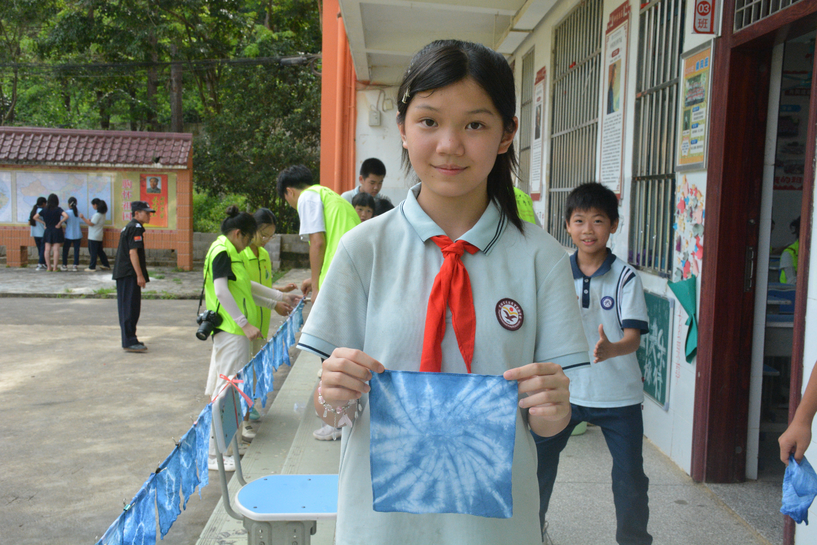 7月18日,初等教育学院“南疆育苗”实践队在凭祥市民族希望实验学校开展了一场别开生面的“童言绘边关,巧手传国韵”爱国主义教育活动。活动通过非遗扎染体验与书画创作结合的形式,让边疆儿童在文化浸润中厚植家国情怀。