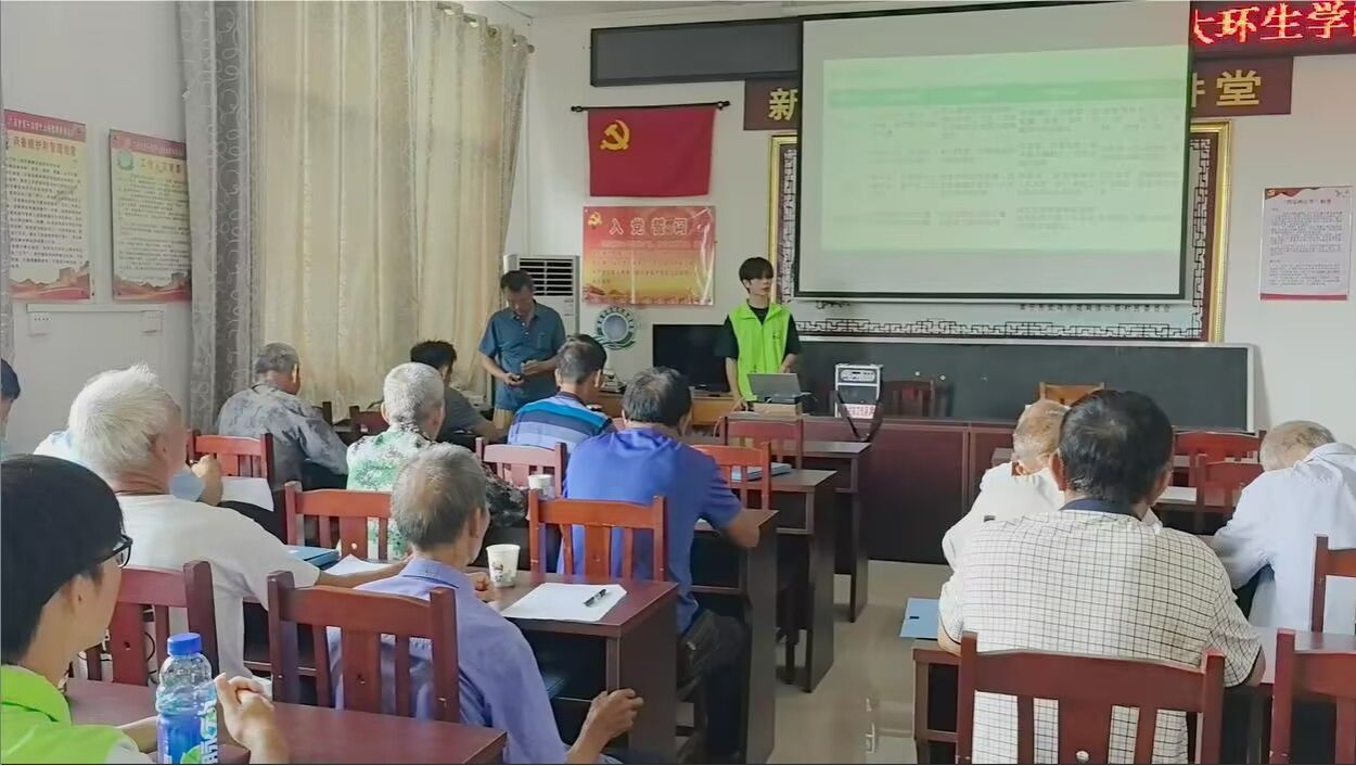 宣讲以“绿水青山就是金山银山”理念为核心,通过鲜活案例展开。实践团成员张钦豪展示了桂林阳朔高田村撂荒地复垦、南宁园博园矿山修复、那考河生态整治等广西本地及周边案例的对比影像,并讲解了一些土壤改良实用知识。张钦豪还结合广西本土案例,详细讲解了金城江区酸性土壤改良、防城港光坡镇盐碱地改造、环江毛南族自治县重金属污染治理等技术与成果。这些案例让村民深刻认识到,守护生态底线能为乡村发展积蓄底气,生态优势可转化为经济红利。他还展示了广西西平乡农药瓶回收的闭环流程及积分兑换机制,让村民明白“小瓶子回收”的“大生态保护”价值。