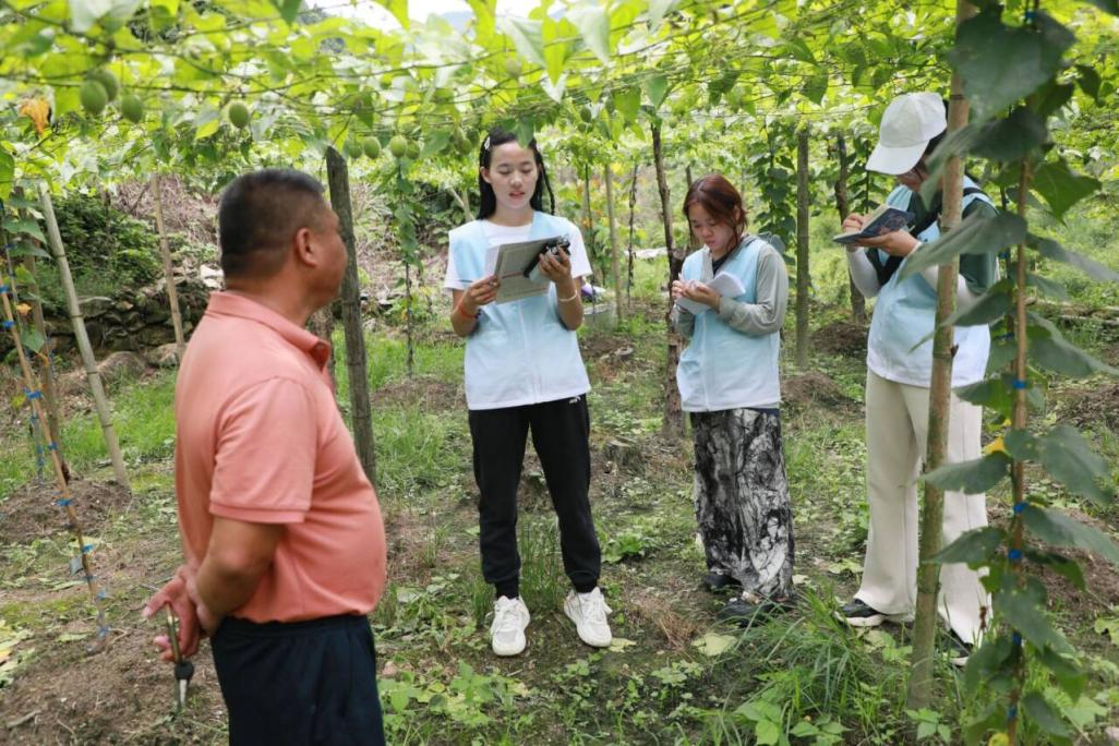 随后,实践团还在村副支书覃昌喜的带领下参观了罗汉果种植基地。通过实地调研和交流互动,团队发现虽然罗汉果种植能带来民生福祉,但农机价格在7000~8000元,仍偏高;随着生产扩大化,农户对农机价格降低的诉求越来越高,希望降至4000元以下。